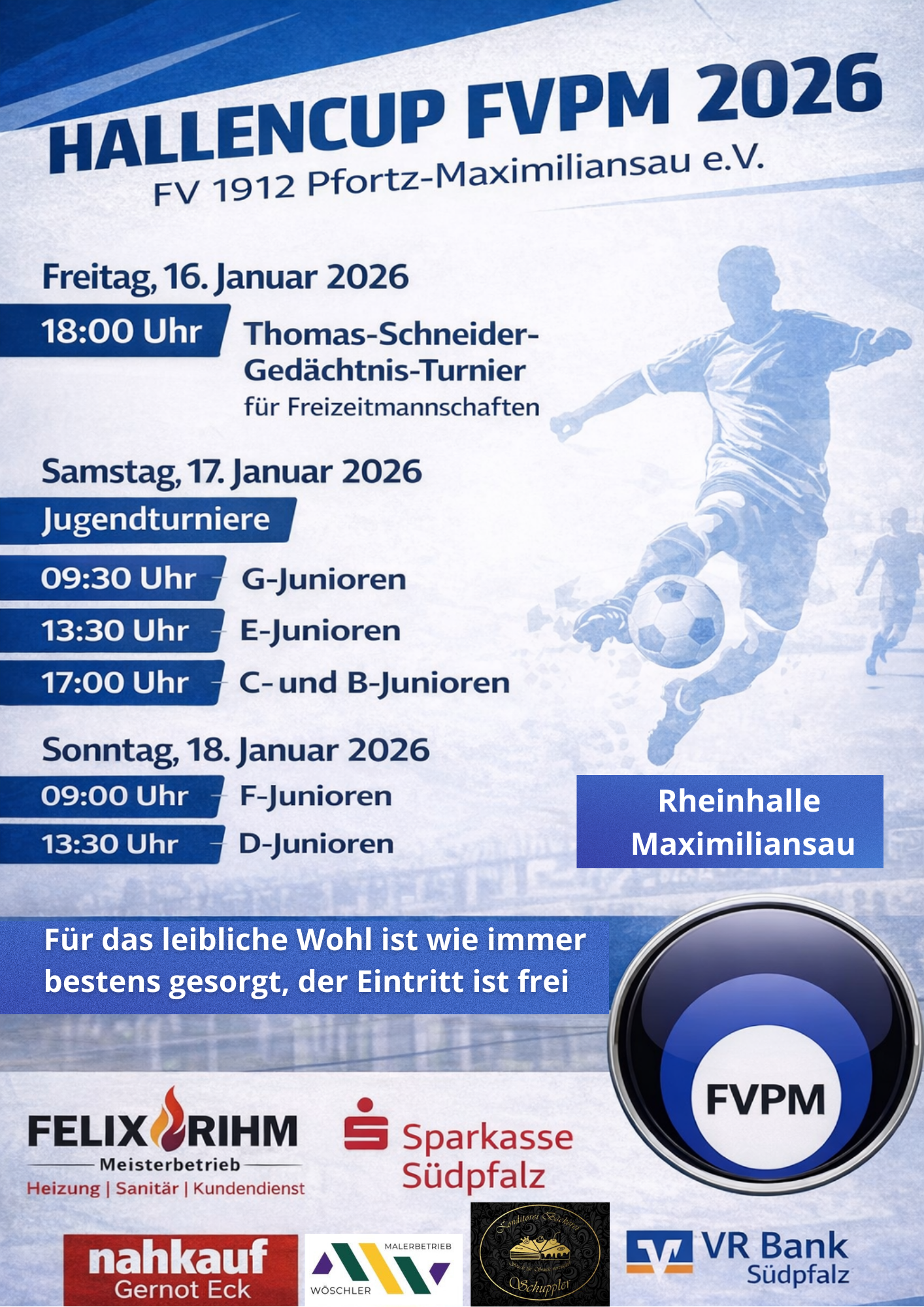 Hallenturniere in der Rheinhalle am 16.01., 17.01. und 18.01.2026